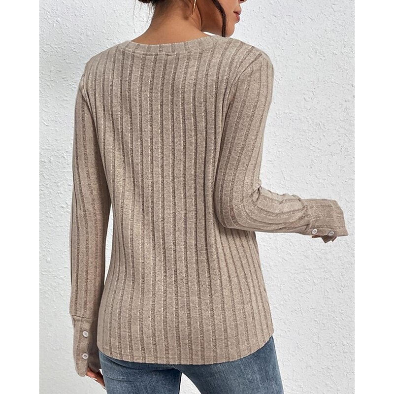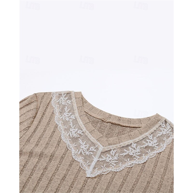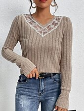 More information about Women's Sweater Pullover Daily Stylish Casual Solid Color Ribbed V Neck Lace Knitted Long Sleeve Regular Tops Knit Daily Holiday Going out Khaki Fall Winter
