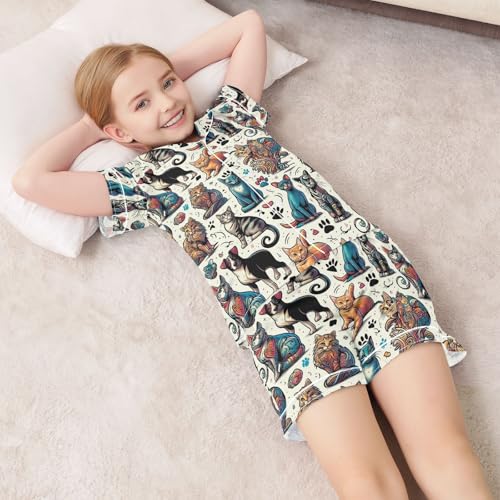 ALAZA Cat Kitten Dog Paw Print Pajamas Satin Pajama Set Short Sleeve Button Down Sleepwear 7