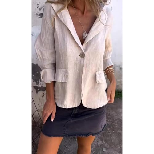 Cotton and Linen Casual Lapel Single-Button Thin Coat, Linen Blazer Women Lightweight 3/4 Sleeve Summer Lapel 3