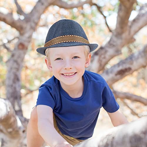 Ultrafun 4 Pack Kids Fedora Hat Short Brim Straw Trilby Jazz Hat Summer Sun Beach Cap for Boys Girls 5-10 Years 6