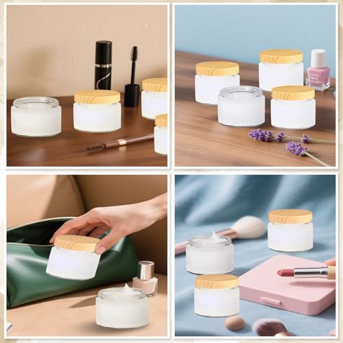 • Travel Size and Portable: The compact design of 2.2 x 2 inches/ 5.6 x 5.1 cm glass cosmetic jars with lids makes them ideal for travel; The 2 oz size of these glass containers fits easily into any luggage, cosmetic bag, or backpack without occupying excessive space; This feature ensures the jars are useful for both everyday activities and business trips
