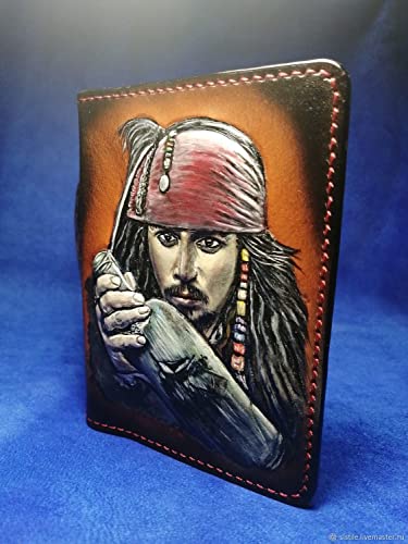 HOT ! Jack Sparrow, 3D Genuine Leather Travel Passport Cover, Passport Holder, Passport Case, Hand-Carved, Hand-Painted, Leather Carving, Custom Passport Case, Personalized Passport Case