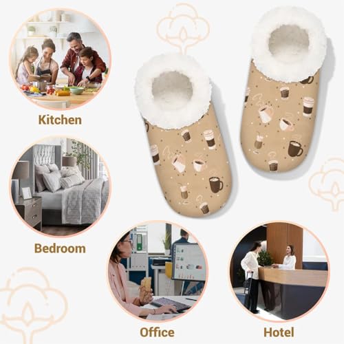 Retro Coffee Themed House Slippers for Women Men Soft Closed Back Slippers Indoor Fuzzy Bedroom Shoes Lightweight Non-slip Home Slippers 4