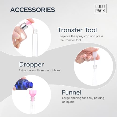 • Cologne Sample Bottle - Never leave your favorite scent behind with this practical cologne sample bottle. Its mini, travel size perfume refill bottle design ensures you can always have your signature fragrance on hand. Whether you're heading to the gym, a business meeting, or a night out, these bottles are designed for quick and easy scent top-ups. The included funnel, dropper, and transfer tools make refilling a breeze, ensuring a seamless and mess-free experience every time.