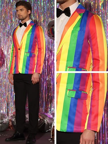 • 【OCCASIONS】Rainbow striped suit jacket offer a versatile option for both formal and semi-formal events, like party, prom, wedding, festival.