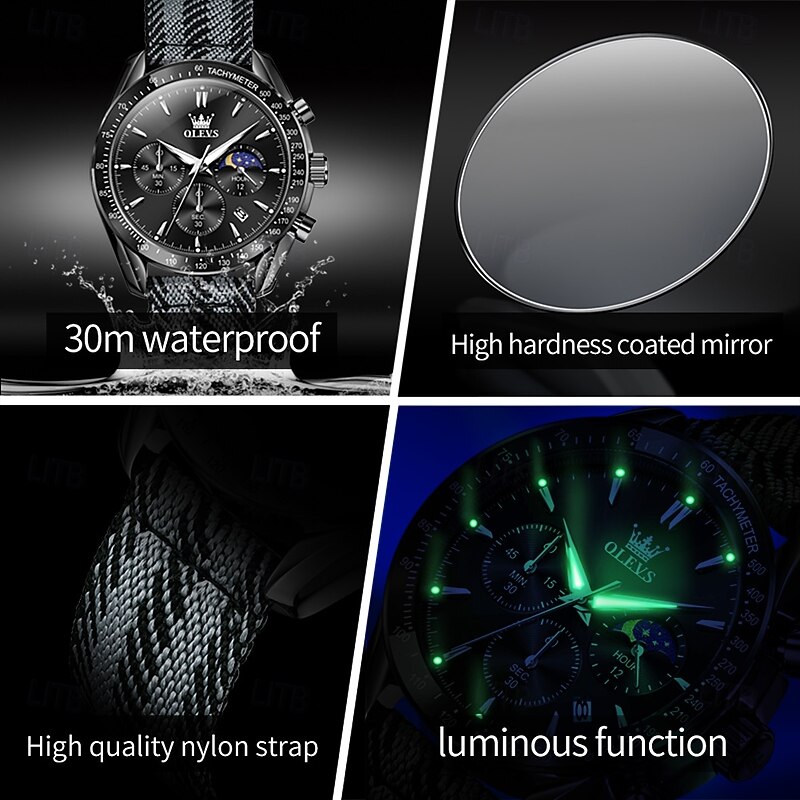 $31.99 - OLEVS 3630 Original Brand Watch for Men Waterproof Luminous Nylonr Strap Quartz Wristwatch Chronograph Mans Watches 2025. Shop for cheap Quartz Watches online? Buy at lightinthebox.com on sale today!