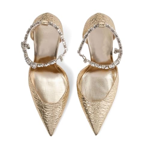 Women's Stiletto Heels Slingback Pumps - Pointed Closed Toe Ankle Rhinestone Strappy Buckle Fashion High Heeled Sandals 4