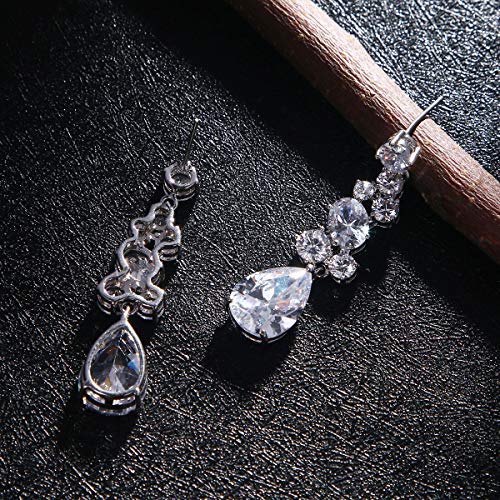 • UNIQUE DESIGN - Silver cluster Pear-shaped dangle drop earrings featuring 14K white gold plated with grade AAA round marquise and waterdrop Cubic Zirconia crystals for a diamond-like brilliance. Crafted from high-quality copper. These long luxurious statement earrings are sure to catch everyone's eyes wherever you go!