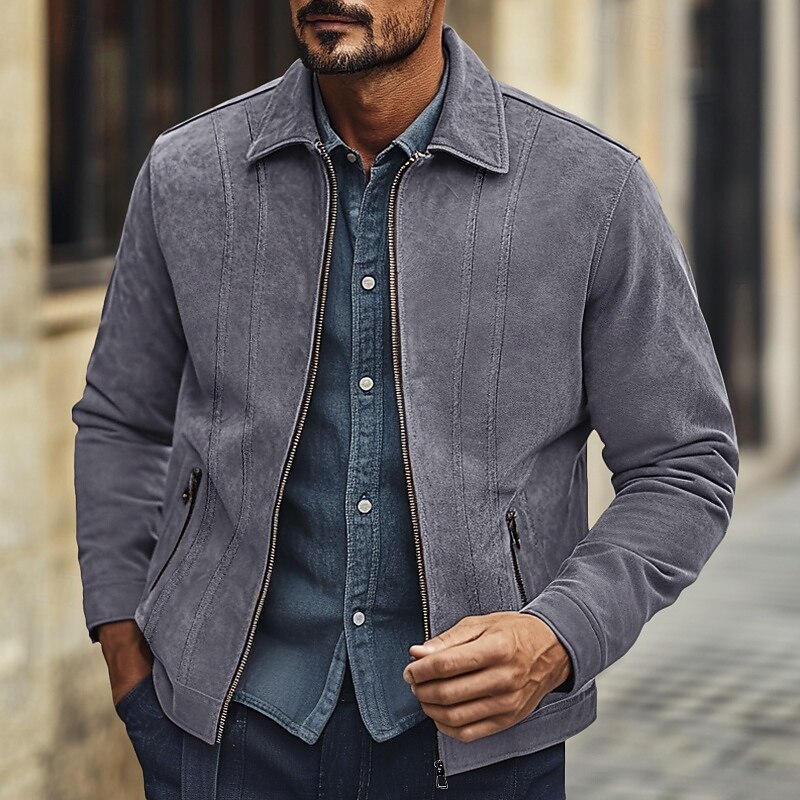 Men's Casual Jacket Faux Suede Jacket Brown Suede Jacket Casual Daily Windbreaker Vintage Style Fall & Winter Solid / Plain Color Casual Lapel Regular Black Brown Green Grey Jacket 1