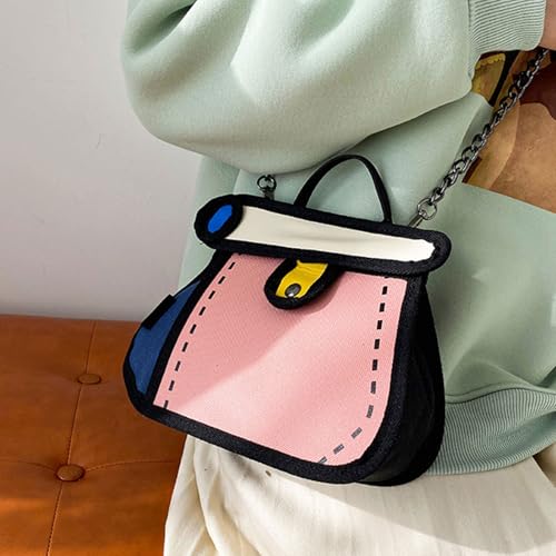 HOT ! Funny 2D Drawing Handbag Cartoon Shoulder Bag With Chain Strap Casual Crossbody Purse For A Stylish And Whimsical Look Fashio