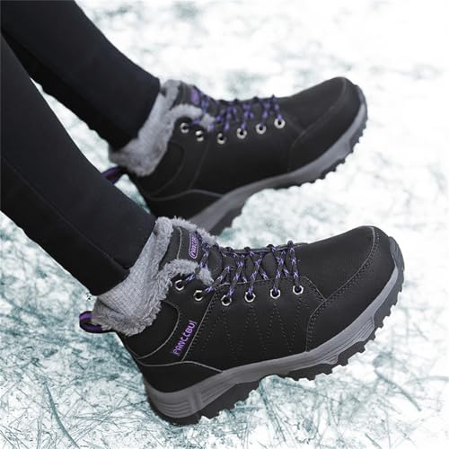 Veslexth Womens Casual Winter Hiking Ankle Boots Outdoor Snow Waterproof Lightweight Lace up Fur Lined Walking Shoes 4