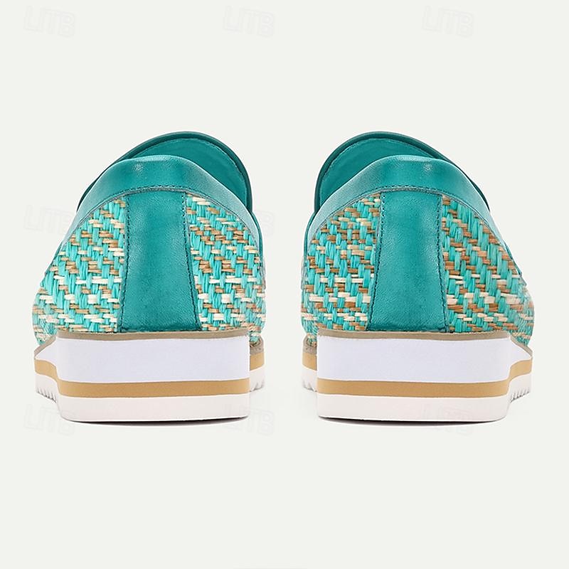 Highlights [Fabric] Expertly crafted from Italian full-grain cowhide leather and intricately woven nylon, these men's loafers offer an ideal blend of durability and breathability. The high-quality leather lining ensures comfort throughout prolonged wear. [Fit] Designed as slip-on loafers, these shoes boast a breathable construction that guarantees all-day comfort. The round toe shape provides ample space, allowing for a relaxed yet stylish fit. [Design Highlights] Featuring a distinctive woven pattern that combines turquoise and beige hues, these loafers make a vibrant statement. The solid white EVA sole, accented with a subtle tan detail, adds both support and a touch of sophistication. A slight elevation in the sole ensures a modern silhouette and added comfort. [Occasions] Perfect for both casual outings and formal gatherings, these loafers serve as a versatile addition to any wardrobe. Whether you’re dressing down for a summer stroll or dressing up for an evening event, these shoes offer style and functionality. [Size Notice] Available in sizes ranging from US8 to US13, these loafers cater to a wide audience, ensuring a comfortable fit for various foot sizes.