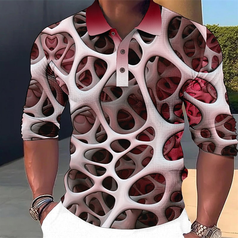 Men's Graphic Polo Shirts Golf Shirt Long Sleeve Polo Shirts Collared Shirts Casual Vacation Wear Rave Wear Party Outfits 3D Print Buttons Light Green Wine Blue 7
