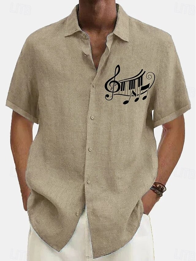 More information about Men's Summer Shirt Casual Shirt Beach Shirt Button Up Shirt Black Navy Blue khaki Gray Short Sleeve Pattern Symbol Lapel Vacation Hawaiian Clothing Apparel Polyester Fashion Casual Comfortable