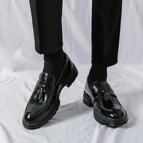 Mens Leather Slip-On Chunky Loafer Shoes with Tassel Fashion Round Toe Low Top Lug Sole Non-Slip Penny Loafers Business Dress Shoes for Men 6