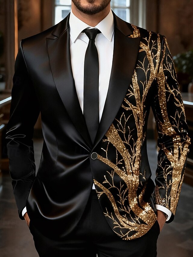 More information about Men's Blazer Business Cocktail Party Wedding Party Fashion Casual Spring Fall Polyester Trees Pocket Buttons Comfortable Single Breasted Blazer Gold