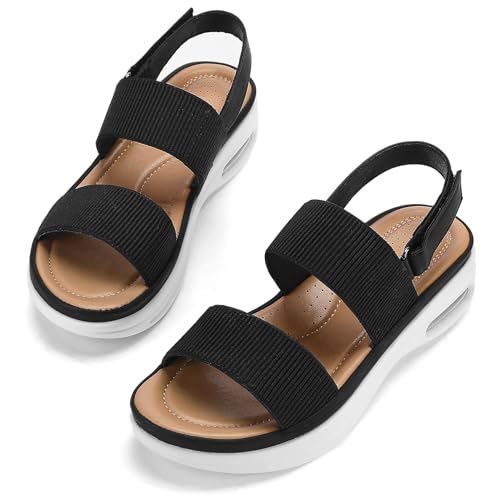 mysoft Women's Walking Sandals Comfortable Air Cushion Platform Elastic Ankle Strap Open Toe Ourdoor Summer Shoes 6