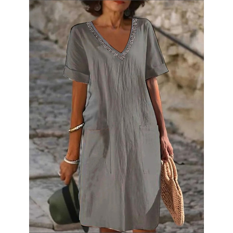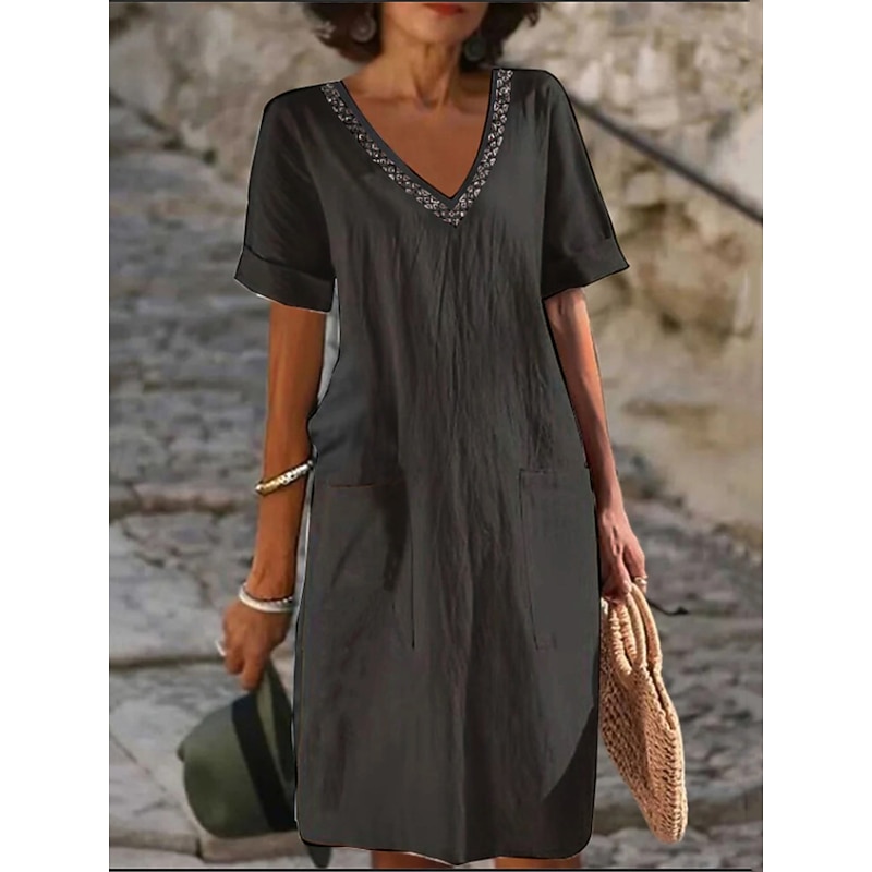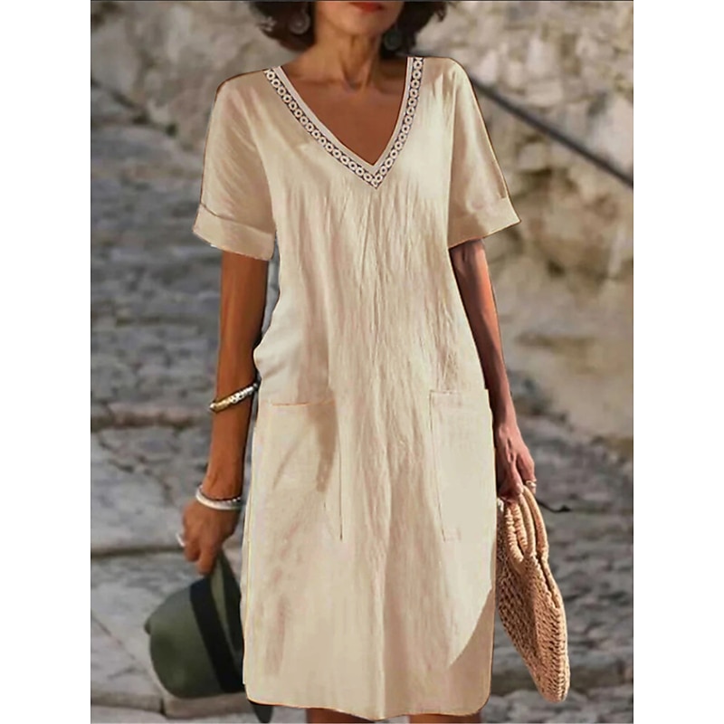Women's Black White Pink Summer Spring Midi Dress Linen-Inspired Dresses White Dress Casual Dress Classic Modern Casual Outdoor Vacation Daily Loose Fit Plain V Neck 6