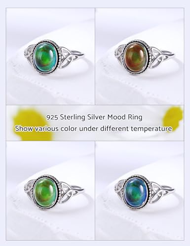 • MOOD RING---7*9MM mood stones are inlaid on high-polished long lasting 925 sterling silver ring.The mood stone change color with your body temperature and reveals your emotions.Bezel setting makes the gemstone stays in the ring firmly,no worry of missing the stone.After repeated tests, the mood stone is sensitive to temperature,color change according to the temperature,keep discoloration for a long time