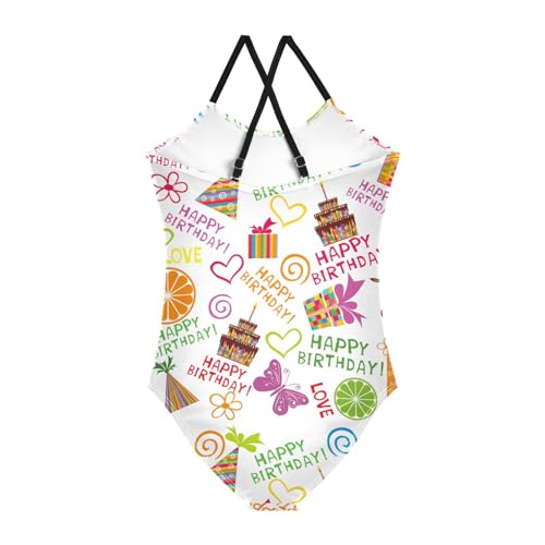 susiyo Cute Happy Birthday Girls One Piece Swimsuits Quick Dry Swimwear Bathing Suit for Beach 3-10 T 1