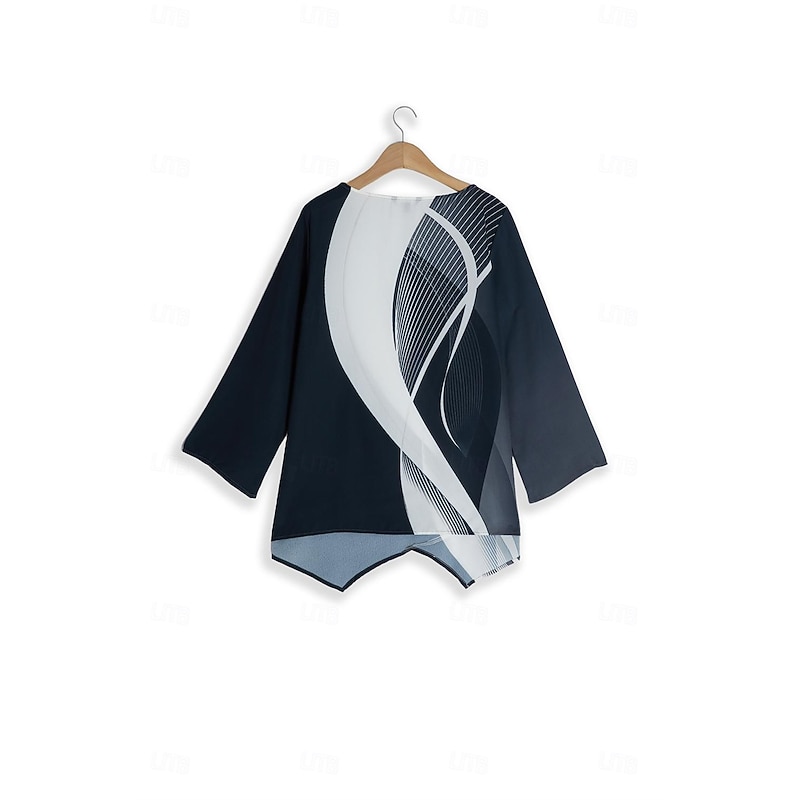 More information about Women's Blouse Long Sleeve Asymmetrical Hem Chiffon Basic Butterfly Print Regular Tops Round Neck Casual White Gray Spring Fall