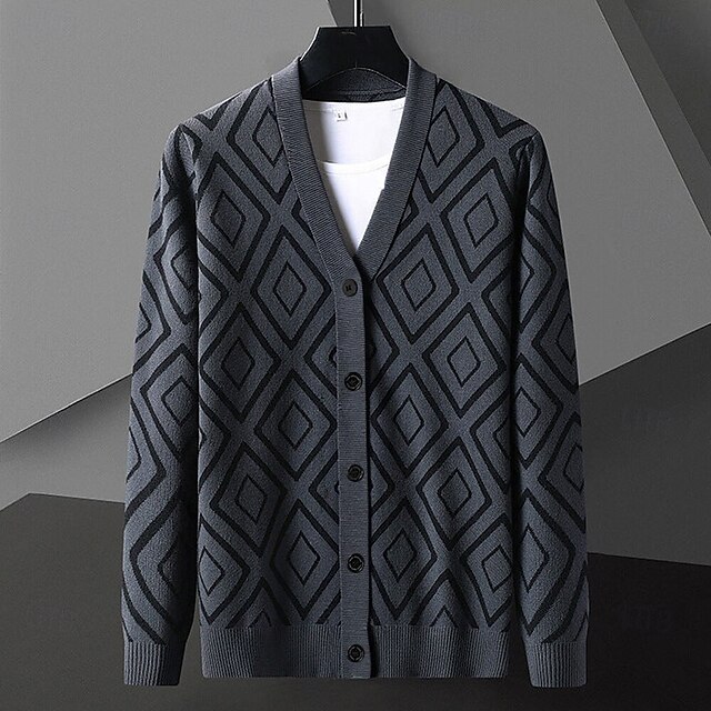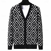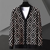 More information about Men's Geometric Diamond Pattern Cardigan Sweater V Neck Casual School Vacation Daily 3D Print Keep Warm Long Sleeve Spring Fall Winter Black Yellow Dark Gray