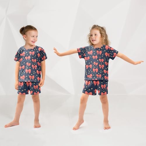 ALAZA Red Bow Star Blue Pajamas Set Short Sleeve Cotton Sleepwear Summer Pjs 2 Piece 5-14Y 2