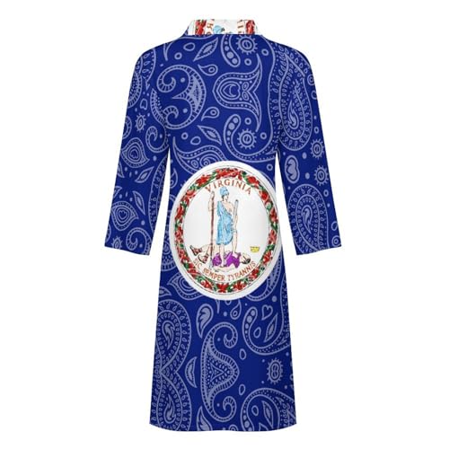 Virginia State Flag Paisley Pattern Funny Men's Robe Novelty Soft Lightweight Bathrobe Long-sleeve Spa Robes 7