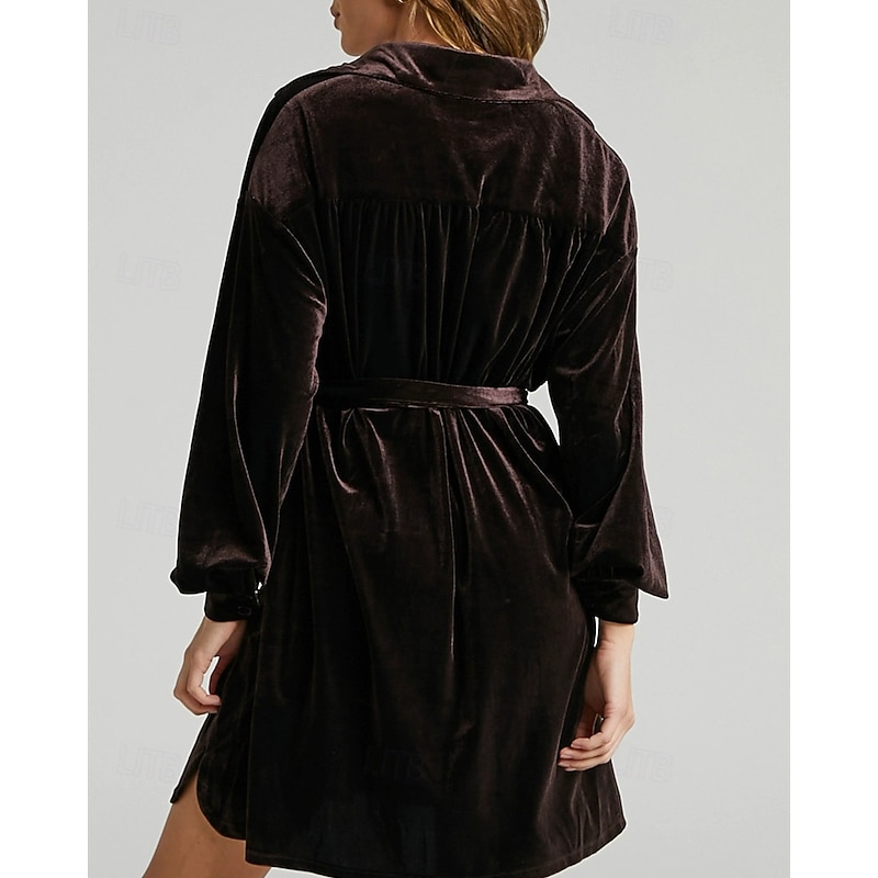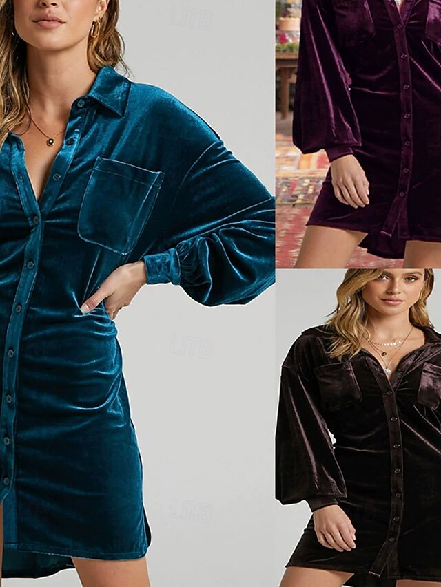 More information about Women's Midi Dress Velvet Dress Cocktail Dress Fashion Classic Modern Outdoor Evening Party Holiday Regular Fit Plain Long Sleeve Shirt Collar Purple Brown Green Summer