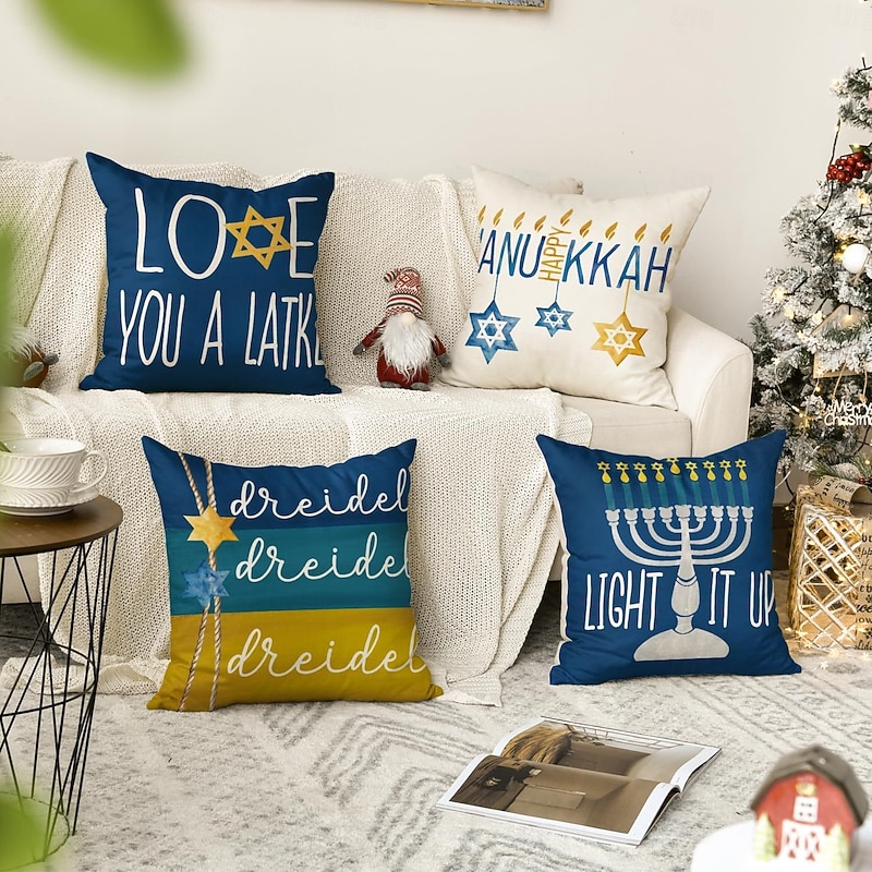 $17.99 - Decorative Happy Hanukkah Toss Pillows Cover 4PC Soft Square Cushion Case Pillowcase for Bedroom Livingroom Sofa Couch Chair 2025. Shop for cheap Holiday Cushion Cover online? Buy at lightinthebox.com on sale today!
