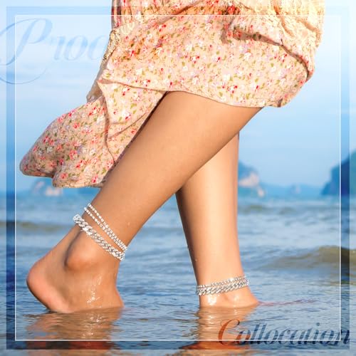 • Nice and Complete Set: you will receive 1 pieces of link anklet for women, and 2 pieces of tennis anklets. The rhinestone gleamed in the sun, they are niece for summer wear and are ideal for beach wear.