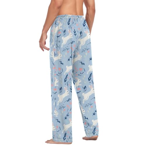 HOT ! Men's Pajama Pants Rabbit Heart Blue Pajama Pants for Men PJs Bottoms Drawstring Pockets Sleep Lounge Pants S