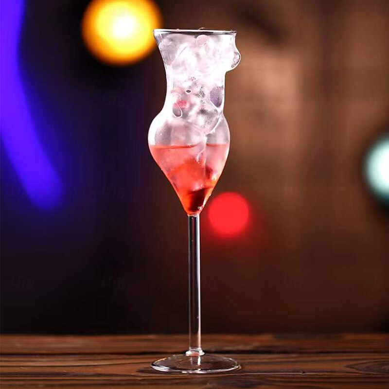 HOT ! Transparent Glass Cocktail Cup – Unique Shaped High-Stem Champagne Glass, Fun Bar Decor Drinkware, Stylish Juice & Wine Glass for Home, Bar, Restaurant & Cold Beverage Shop