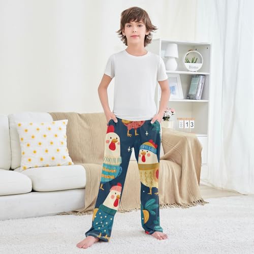 HOT ! ZZXXB Chicken Snow Print Boys Long Pants Soft Trousers Elastic Waist Kids Lounge Bottoms with Pockets S-XL