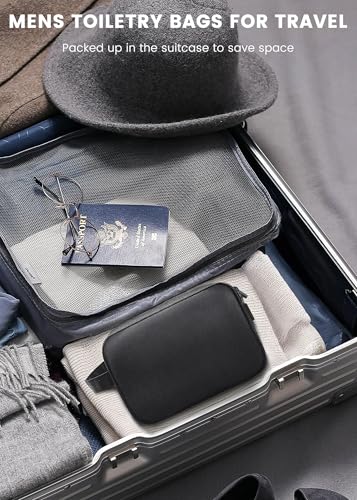 • 【WET DRY SEPARATION】Men's toiletry travel bag, multiple mesh pockets inside, hold all toiletries and shaving supplies organized. Designed a separate towel bag and waterproof inner bag. Mens dopp kit for travel, waterproof zipper and fabric help the toiletry bags withstand common bathroom spills.