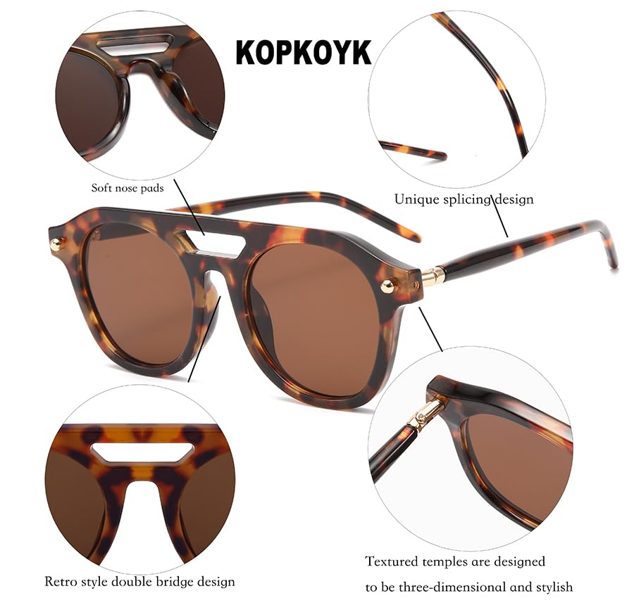 • Retro Vintage Aviator Sunglasses: These aviator sunglasses are designed with a vintage style, inspired by the classic aviator sunglasses worn by aviator in the 1970s. The plastic frame and arms provide durability and a luxurious feel, while the HD lenses offer 100% UV protection to shield your eyes from harmful rays.