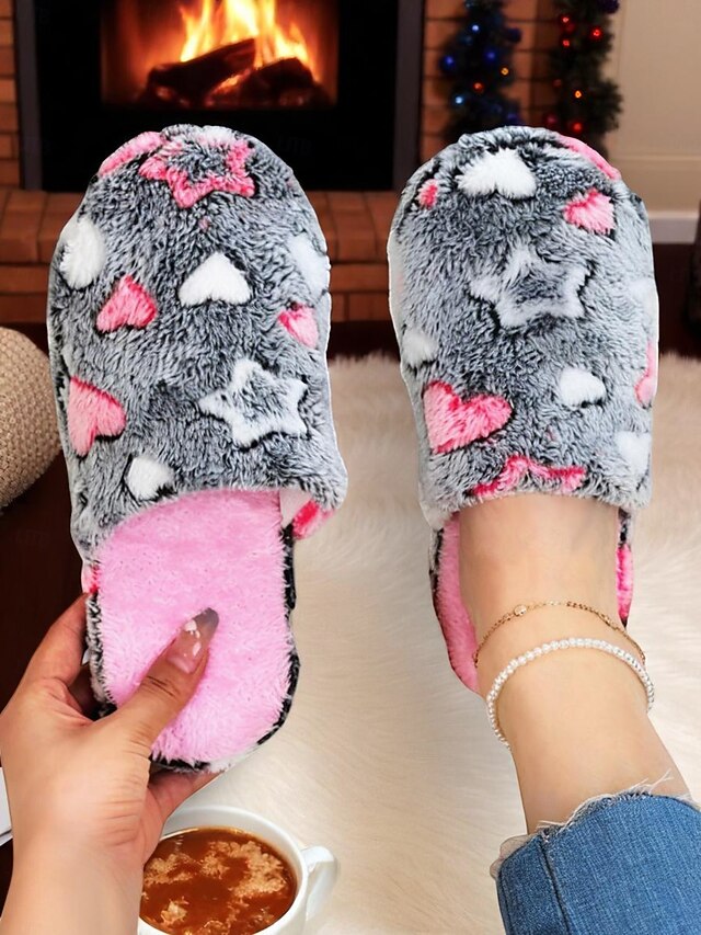 Women's Fuzzy Star Print Indoor Slippers – Cozy Faux Fur Winter House Shoes for Living Room, Bedroom & Holiday Mornings 22