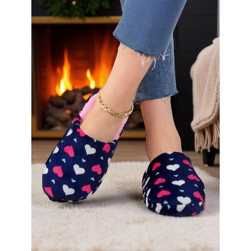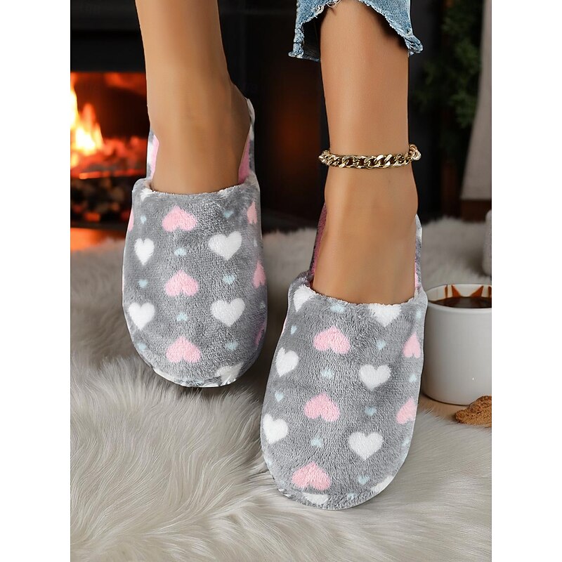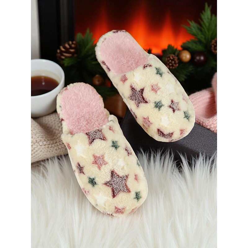 Women's Fuzzy Star Print Indoor Slippers – Cozy Faux Fur Winter House Shoes for Living Room, Bedroom & Holiday Mornings 27