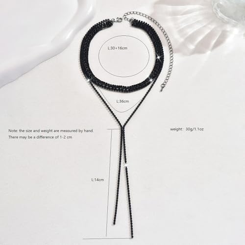 Boho Fashion Y Long Neckalce Prom Shinny Black Silver Rhinestones Choker Necklace Dainty Layered Sexy Choker Necklace Black Halloween Christmas Necklace for Women 4 Tier 4