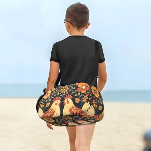 Kids Sports Duffel Bag for Boys & Girls - Cute Floral Chickens Leaves 100% Polyester Gym Bag with Separate Shoe Compartment, Adjustable Shoulder Strap, Compact Travel & Workout Gear Bag 7