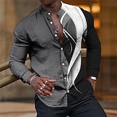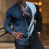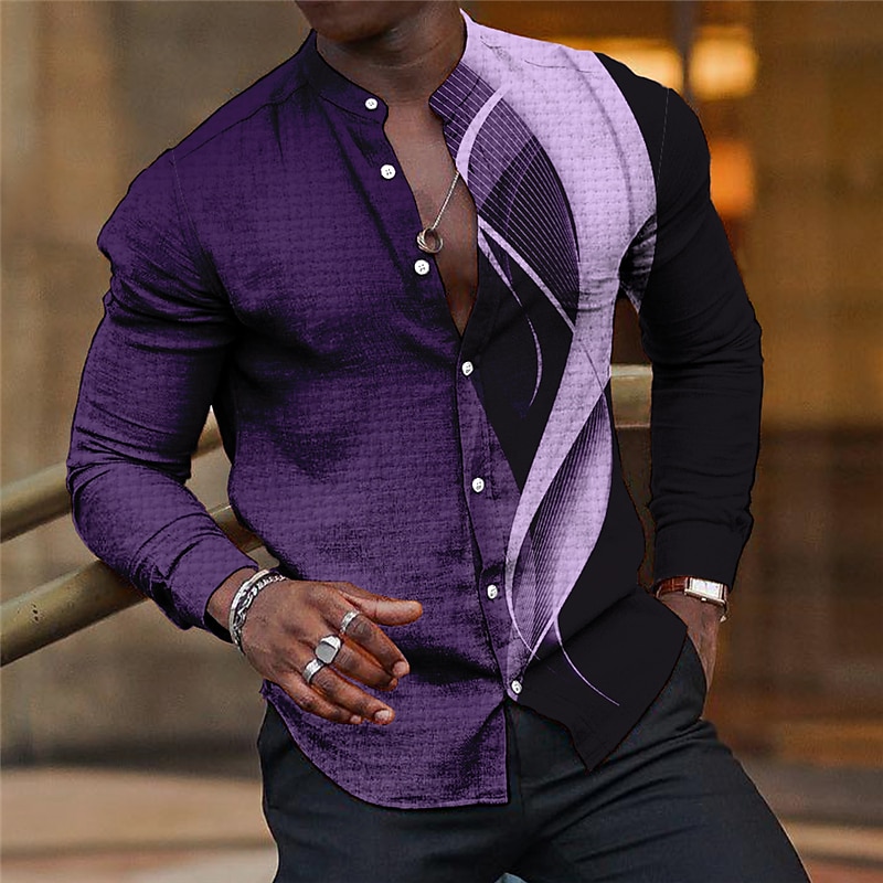 Highlights We're thrilled to bring you this unique Men's Shirt a collaboration with our friends in fashion design This Linen Shirt boasts Gradient Graphic Prints Geometry Linear effect and a cool Stand Collar It's presented in a lavish palette of Blue Purple Brown Green and Gray a perfect blend for an Outdoor Street vibe Crafted from a soft Polyester-Linen mix this Shirt provides comfort and a Regular Fit making it perfect for all seasons With a distinct Print Design this Long Sleeve piece stands out in Streetwear Casual and Designer styles It's machine and hand washable just like your individuality it's one-of-a-kind!
