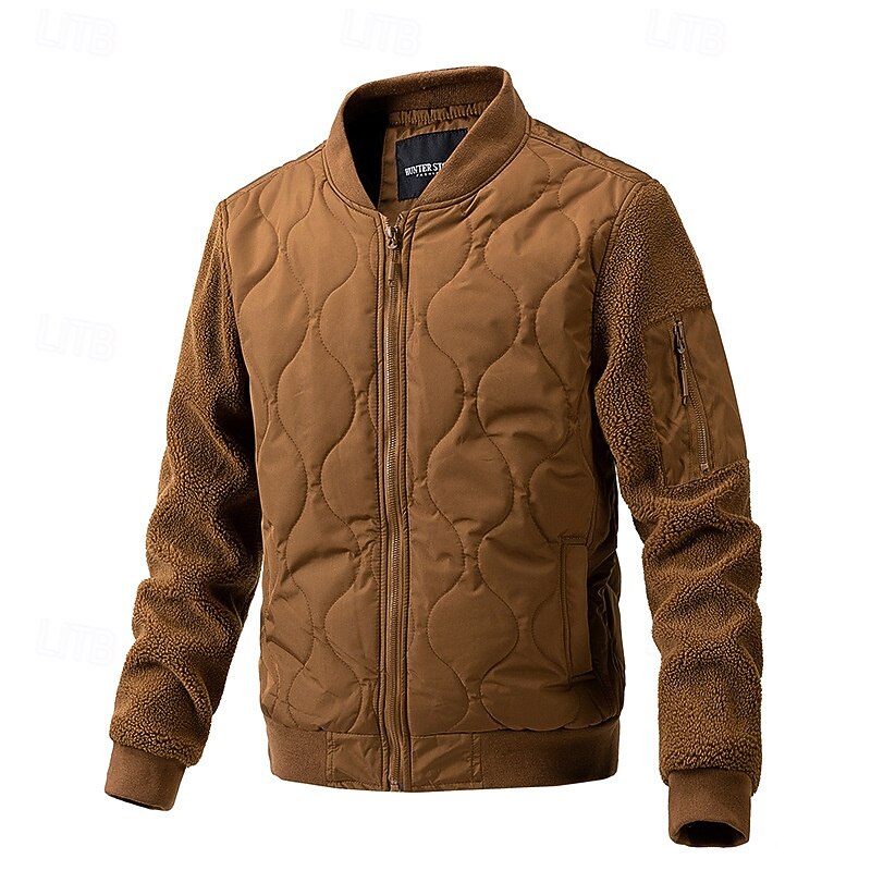 More information about Men's Winter Coat Quilted Jacket Parka Pocket Polyster Vacation Daily Wear Date Regular Fashion Casual Comfortable Thermal Warm Winter Solid / Plain Color Black Yellow Khaki Army Green Puffer Jacket