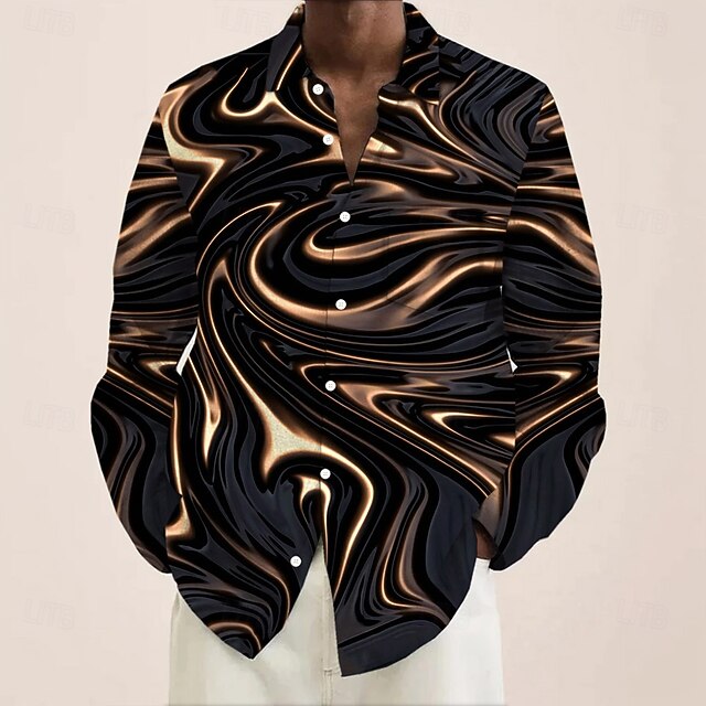 More information about Men's Geometric Marble Abstract Liquid Art Shirt Button Up Shirt Long Sleeve Fashion Casual Vacation Daily Streetwear Spring Fall Turndown 3D Print Collared Shirts Front One Pocket Black