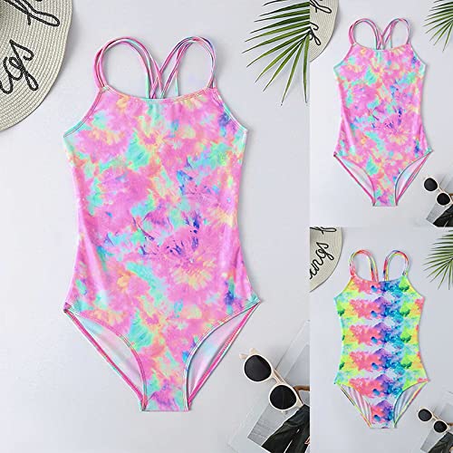Teen Swimsuits for Girls Kids Tie Dye One Piece Bathing Suits Criss Cross Back Swimwear Summer Beachwear 6