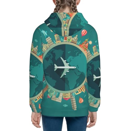 Around The Planet Kid Hoodies Boys Zip Up Sweatshirts Girls Pullover with Pocket 1