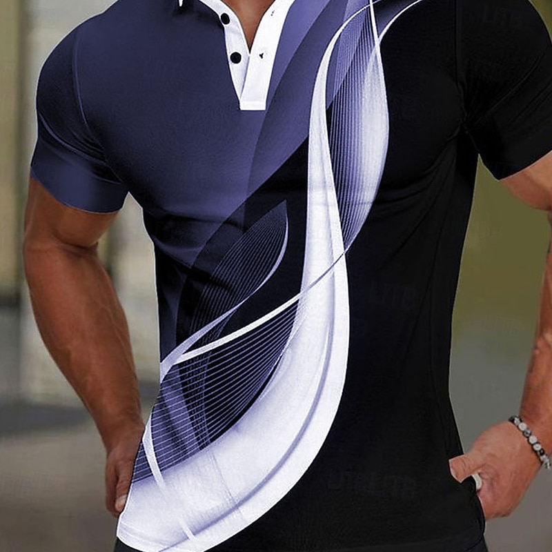 More information about Men's Geometic Line Polo Short Sleeve Polo Shirts Collared Shirts Casual School Outdoor Daily Wear Home Wear 3D Print Summer Black Purple Green