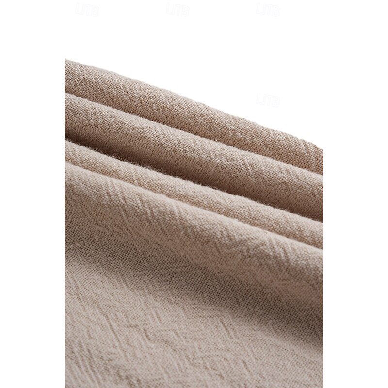 Men's Linen Shirt Band Collar Shirt Popover Shirt Summer Shirt Beach Wear Casual Shirt Plain Vacation Casual Black White Red Khaki Short Sleeve Band Collar Summer Clothing Apparel Buttons 11