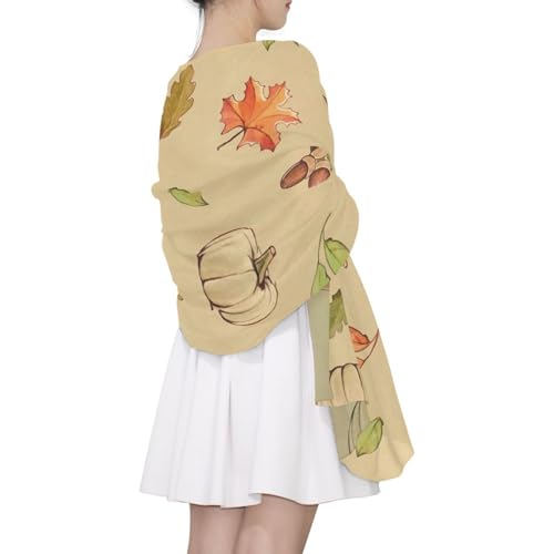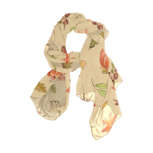 OTVEE Autumn Leaves and Pumpkin Scarf for Women Lightweight Soft Chiffon Scarf Shawl Wrap for Women 7