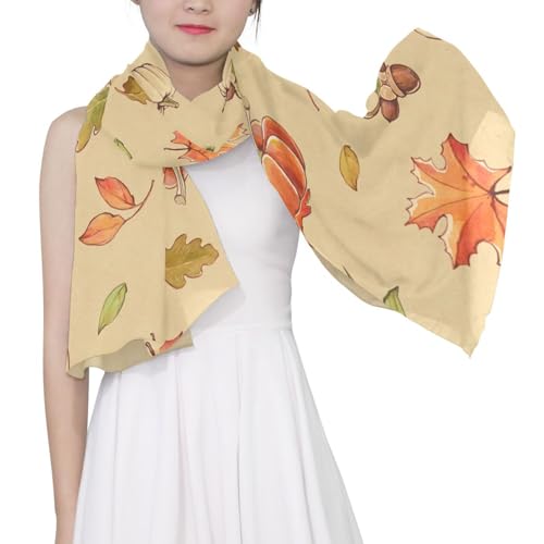 HOT ! OTVEE Autumn Leaves and Pumpkin Scarf for Women Lightweight Soft Chiffon Scarf Shawl Wrap for Women