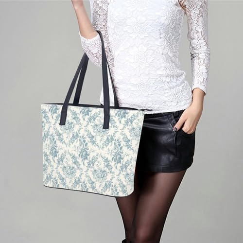 Blue And White Floral Toile Leather Handbag Smooth Wrinkle Resistant Lightweight And Convenient 1